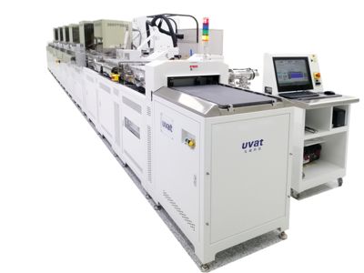 此設備為連續式立式濺鍍成膜系統,應用領域包含手持移動裝置設備、車載數位顯式屏、智慧居家數位顯式屏、攝影系統、光學儀器...等產品。可製鍍高穿透低反射AR、彩色濾光片Color Filter、防指紋膜AF...等等光學膜。